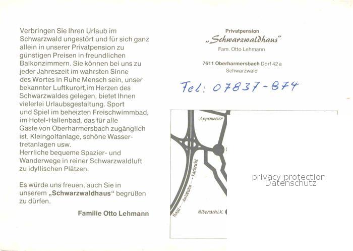 72628440 Oberharmersbach Privatpension Schwarzwaldhaus postalisch nicht gelaufen Werbekarte (keine Postkarte) Erhaltung siehe scans [NatalD47] KatCode: 11110008317088