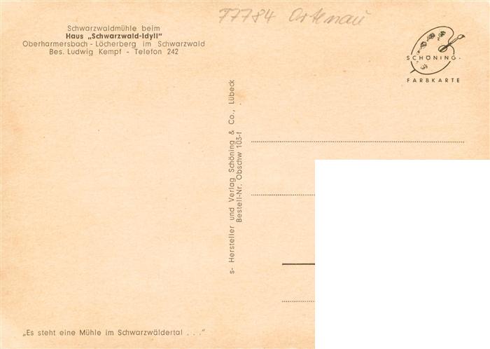 73885288 Oberharmersbach Schwarzwaldmuehle beim Haus Schwarzwald Idyll postalisch nicht gelaufen Erhaltung siehe scans [WerneD78] KatCode: 11110008317088
