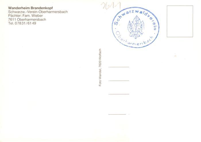73927950 Oberharmersbach Wanderheim Brandenkopf Schwarzwaldverein Aussichtsturm postalisch nicht gelaufen Erhaltung siehe scans [FriedD77] KatCode: 11110008317088