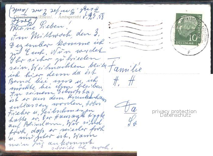 72147380 alte Postkarte Oberhausen Amtsgericht postalisch gelaufen Erhaltung siehe scans KatCode: 11110005119000