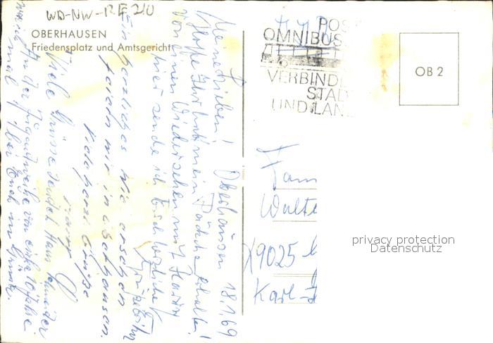72227057 alte Postkarte Oberhausen Friedensplatz und Amtsgericht postalisch gelaufen Erhaltung siehe scans KatCode: 11110005119000