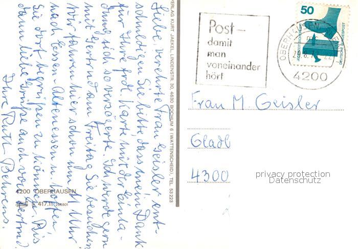 73310339 alte Postkarte Oberhausen Friedensplatz Wasserspiele Rathaus Hauptbahnhof Schloss Wappen postalisch gelaufen Erhaltung siehe scans [FriedD77] KatCode: 11110005119000