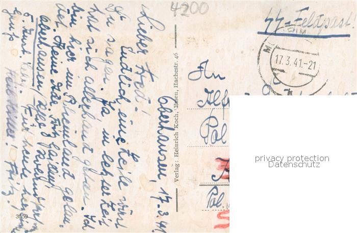 73748791 alte Postkarte Oberhausen Hauptbahnhof Emfangshalle Hotel Ruhrland postalisch gelaufen Feldpost auf Karte (Motiv) Erhaltung siehe scans [WerneD78] KatCode: 11110005119000