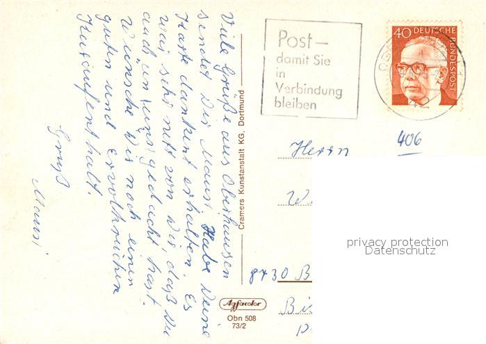 73012185 alte Postkarte Oberhausen Hauptbahnhof Rathaus Grillopark Wasserspiele Europahaus postalisch gelaufen Erhaltung siehe scans [KathaD81] KatCode: 11110005119000