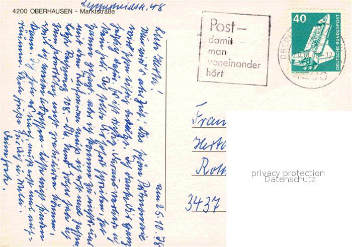 72756897 alte Postkarte Oberhausen Marktgasse postalisch gelaufen Erhaltung siehe scans [LiesaD40] KatCode: 11110005119000