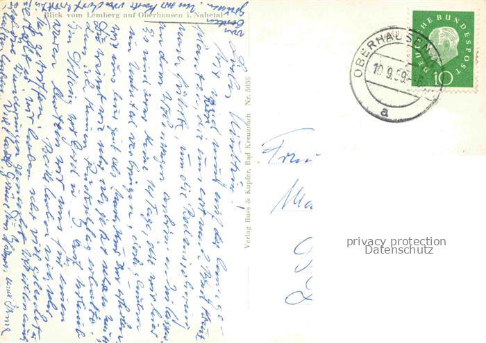Oberhausen Nahetal Bad Kreuznach Rheinland-Pfalz Panorama Blick vom Lemberg postalisch gelaufen Erhaltung siehe scans [FriedD77] alte Postkarte Frie Katcode 11110007133074