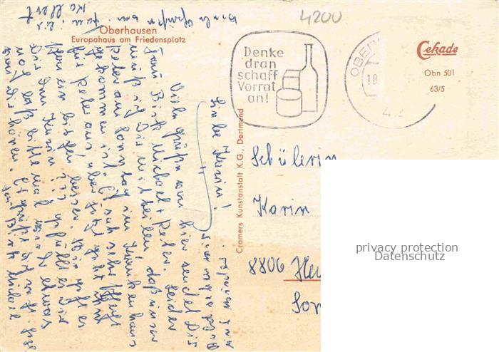 74100643 alte Postkarte Oberhausen NRW Europahaus am Friedensplatz postalisch gelaufen Erhaltung siehe scans [WerneD78] KatCode: 11110005119000