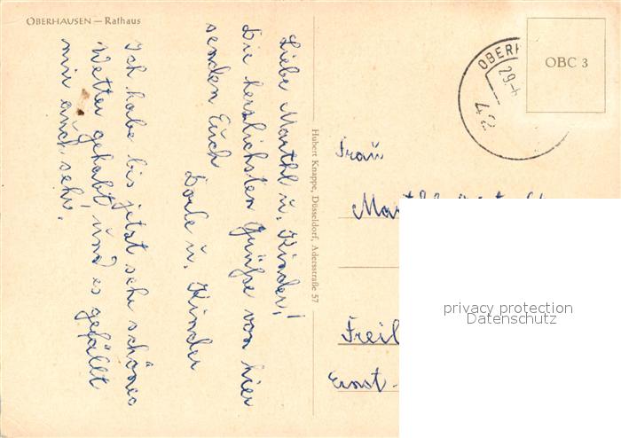 73040926 alte Postkarte Oberhausen Rathaus postalisch gelaufen Erhaltung siehe scans [FriedD77] KatCode: 11110005119000