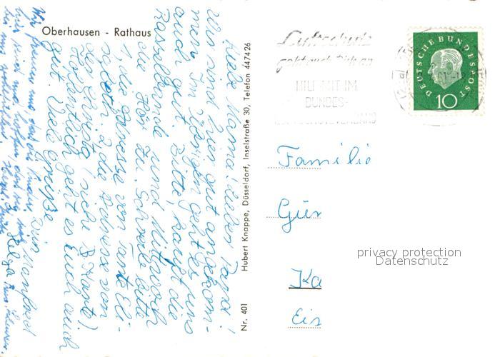 72983887 alte Postkarte Oberhausen Rathaus postalisch gelaufen Erhaltung siehe scans [FriedD77] KatCode: 11110005119000