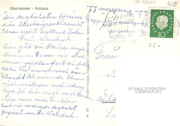 72952833 alte Postkarte Oberhausen Rathaus postalisch gelaufen Erhaltung siehe scans [FriedD77] KatCode: 11110005119000