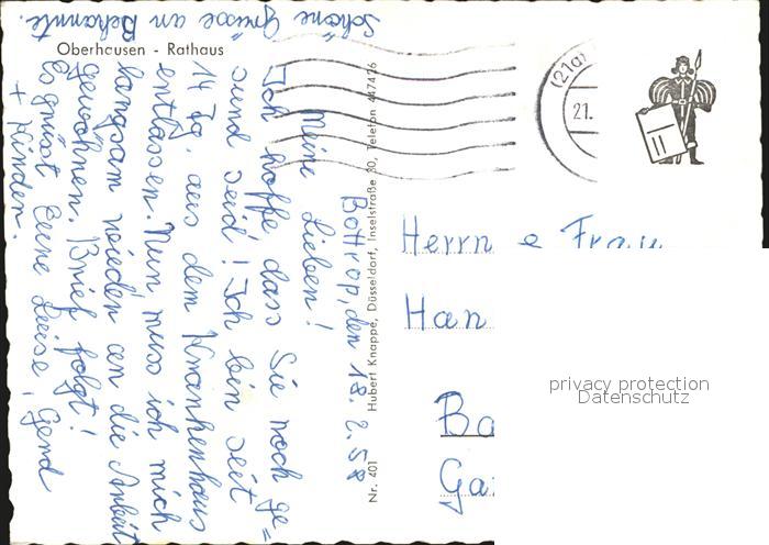 72472774 alte Postkarte Oberhausen Rathaus postalisch gelaufen Erhaltung siehe scans KatCode: 11110005119000