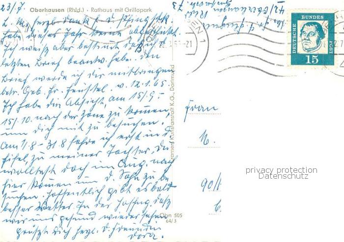73783747 alte Postkarte Oberhausen Rathaus mit Grillopark postalisch gelaufen Erhaltung siehe scans [FriedD77] KatCode: 11110005119000