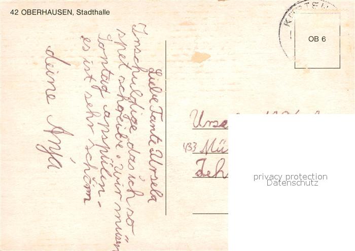 73012184 alte Postkarte Oberhausen Stadthalle postalisch gelaufen Erhaltung siehe scans [KathaD81] KatCode: 11110005119000