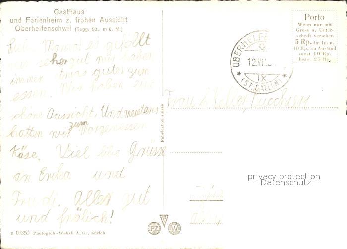 11630408 alte Postkarte Oberhelfenschwil Gasthaus Ferienheim zur frohen Aussicht postalisch gelaufen Erhaltung siehe scans KatCode: 11470190585832
