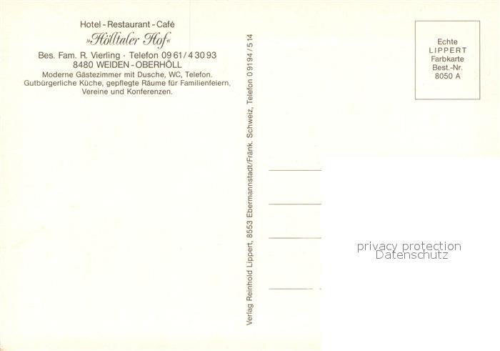 73655784 Oberhoell Weiden Hotel Restaurant Cafe Hoelltaler Hof Teich postalisch nicht gelaufen Erhaltung siehe scans [FriedD77] KatCode: 11110009363000