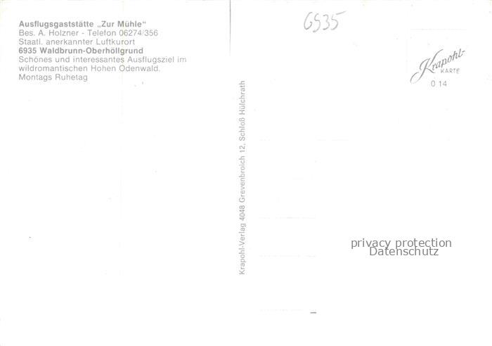 74035497 Oberhoellgrund Waldbrunn Ausflugsgaststaette Zur Muehle postalisch nicht gelaufen Erhaltung siehe scans [WerneD78] KatCode: 11110008225118