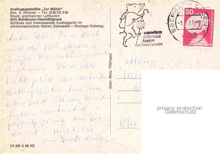 74047513 alte Postkarte Oberhoellgrund Waldbrunn Gasthaus Zur Muehle Gastraum Muehlrad postalisch gelaufen Erhaltung siehe scans [WerneD78] KatCode: 11110008225118