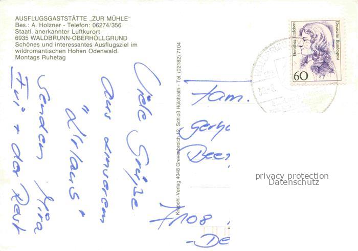 74047673 alte Postkarte Oberhoellgrund Waldbrunn Gasthaus Zur Muehle Gastrum Muehlrad postalisch gelaufen Erhaltung siehe scans [WerneD78] KatCode: 11110008225118