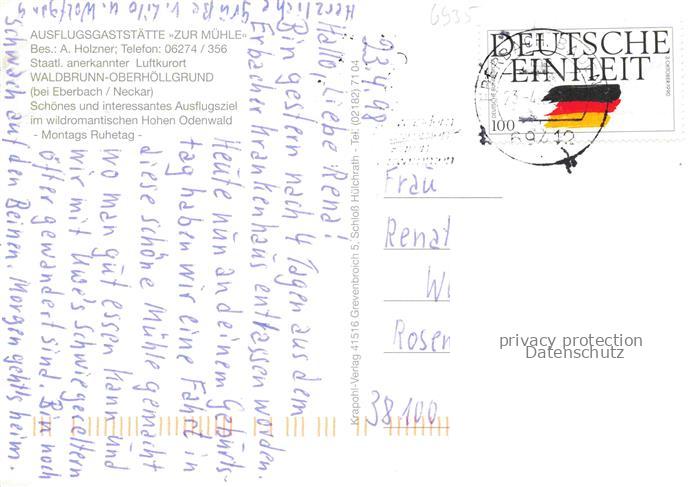 74047657 alte Postkarte Oberhoellgrund Waldbrunn Gaststaette Zur Muehle postalisch gelaufen Erhaltung siehe scans [WerneD78] KatCode: 11110008225118