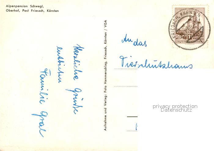 73042473 alte Postkarte Oberhof Friesach Alpenpension Schwegl Landschaftspanorama postalisch gelaufen Erhaltung siehe scans [FriedD77] KatCode: 11390213020505