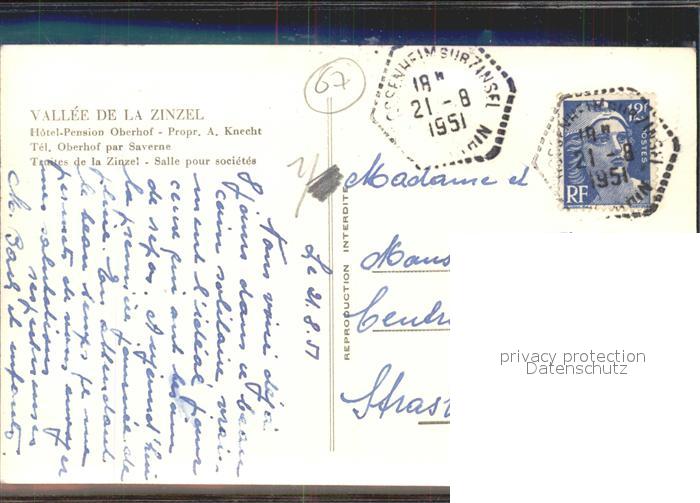 11917785 carte postale Oberhof par Saverne Panorama Vallee de la Zinzel postalisch gelaufen Erhaltung siehe scans KatCode: 11170067467322