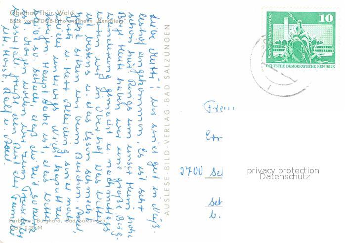 72841801 alte Postkarte Oberhof Thueringen Blick vom FDGB Erholungsheim Rennsteig postalisch gelaufen Erhaltung siehe scans [WerneD78] KatCode: 11110016066047
