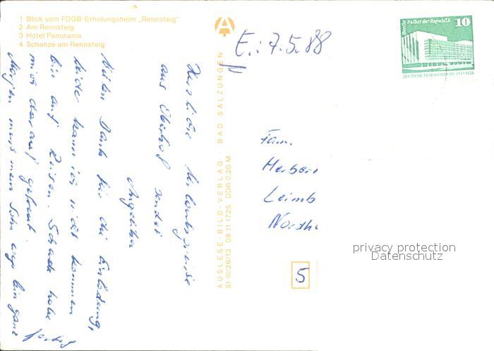 72281748 alte Postkarte Oberhof Thueringen Blick vom FDGB Erholungsheim Rennsteig Hotel Panorama Sprungschanze Skispringen postalisch gelaufen Erhaltung siehe scans KatCode: 11110016066047