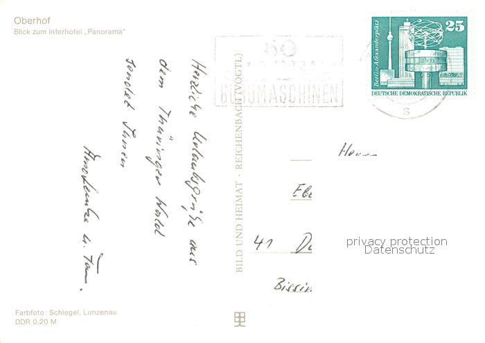 73295564 alte Postkarte Oberhof Thueringen Blick zum Interhotel Panorama postalisch gelaufen Erhaltung siehe scans [FriedD77] KatCode: 11110016066047