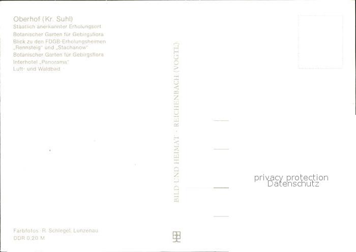 72553662 Oberhof Thueringen botanischer Garten Erholungsheime Rennsteig und Stachanow Interhotel Panorama Freibad postalisch nicht gelaufen Erhaltung siehe scans [LiesaD40] KatCode: 11110016066047