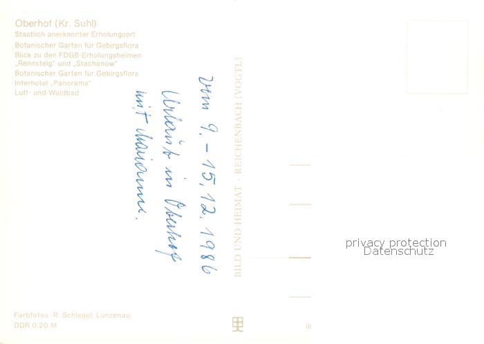 72972626 Oberhof Thueringen Botanischer Garten Gebirgsflora FDGB Erholungsheime Interhotel Panorama Freibad postalisch nicht gelaufen Erhaltung siehe scans [FriedD77] KatCode: 11110016066047