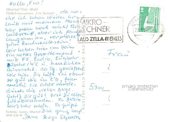72962157 alte Postkarte Oberhof Thueringen Erholungsheim Fritz Weineck postalisch gelaufen Erhaltung siehe scans [PaolaD17] KatCode: 11110016066047