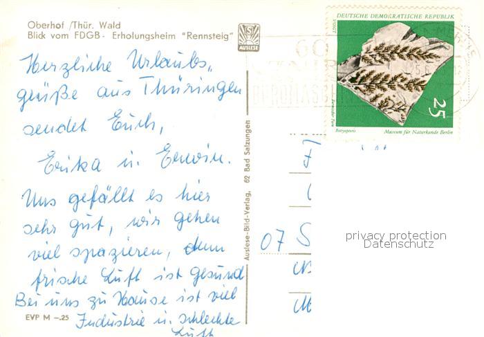 72938479 alte Postkarte Oberhof Thueringen Erholungsheim Rennsteig postalisch gelaufen Erhaltung siehe scans [NatalD47] KatCode: 11110016066047