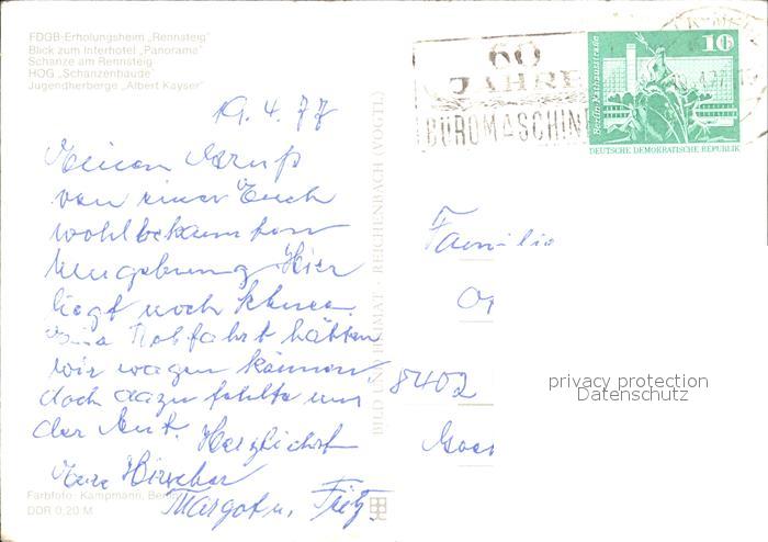 72374377 alte Postkarte Oberhof Thueringen Erholungsheim Rennsteig Interhotel Panorama Schanze postalisch gelaufen Erhaltung siehe scans KatCode: 11110016066047