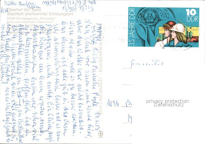 72375687 alte Postkarte Oberhof Thueringen Erholungsheim Rennsteig Panorama postalisch gelaufen Erhaltung siehe scans KatCode: 11110016066047