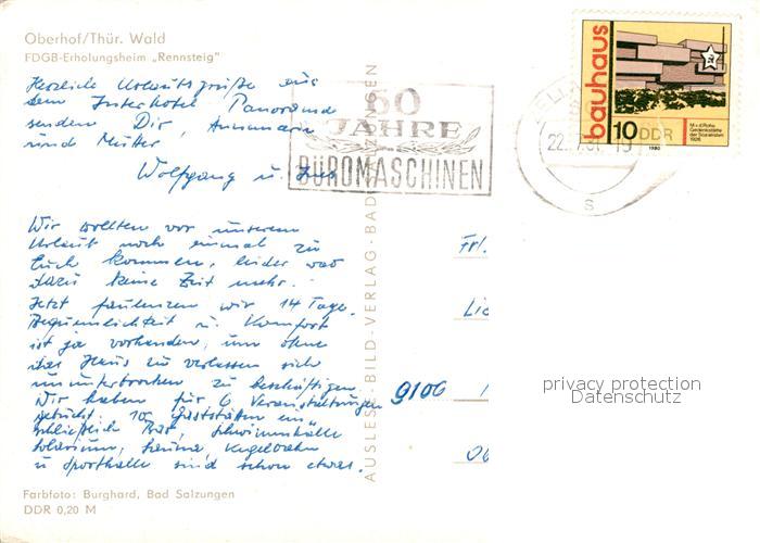 73089250 alte Postkarte Oberhof Thueringen Erholungsheim Rennsteig postalisch gelaufen Erhaltung siehe scans [NatalD47] KatCode: 11110016066047