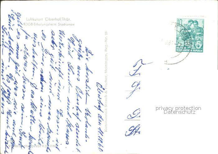 72385583 alte Postkarte Oberhof Thueringen Erholungsheim Stachanow postalisch gelaufen Erhaltung siehe scans KatCode: 11110016066047