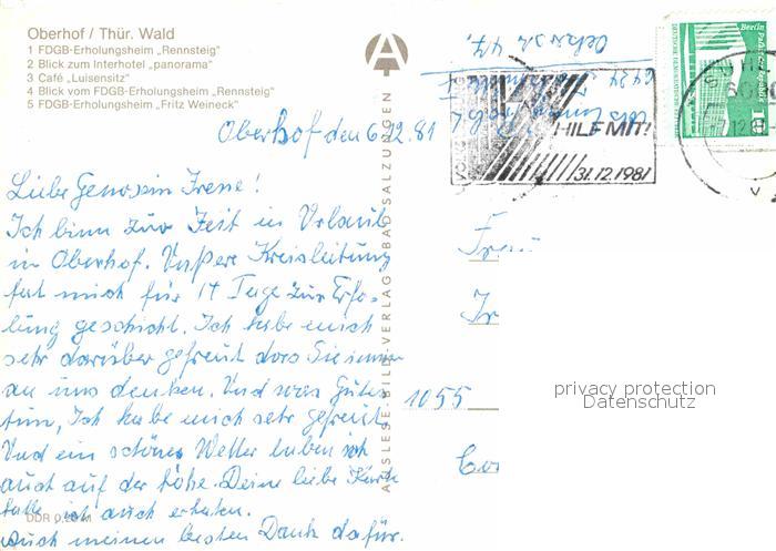 72867471 alte Postkarte Oberhof Thueringen Erholungsheime Rennsteig Fritz Weineck Interhotel-Panorama Cafe Luisensitz postalisch gelaufen Erhaltung siehe scans [LiesaD40] KatCode: 11110016066047