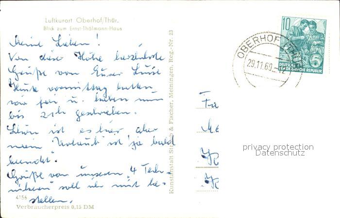 72385163 alte Postkarte Oberhof Thueringen Ernst-Thaelmann-Haus postalisch gelaufen Erhaltung siehe scans KatCode: 11110016066047