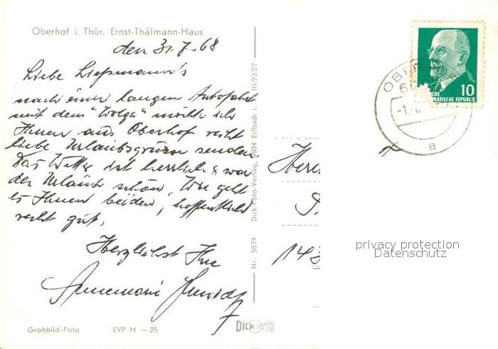 72925744 alte Postkarte Oberhof Thueringen Ernst-Thaelmann-Haus postalisch gelaufen Erhaltung siehe scans [PaolaD17] KatCode: 11110016066047