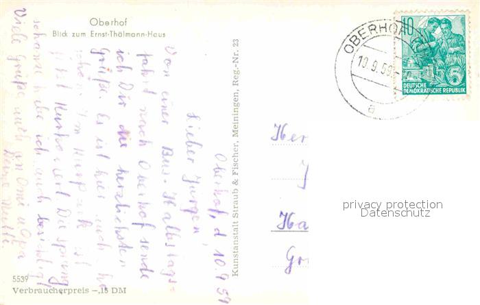 72919936 alte Postkarte Oberhof Thueringen Ernst Thaelmann Haus postalisch gelaufen Erhaltung siehe scans [WerneD78] KatCode: 11110016066047