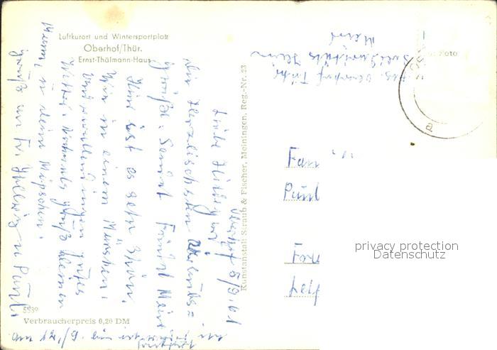 72273352 alte Postkarte Oberhof Thueringen Ernst Thaelmann Haus Brunnen Fontaene postalisch gelaufen Erhaltung siehe scans KatCode: 11110016066047