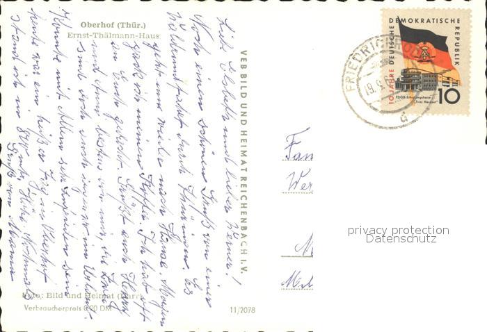 72061428 alte Postkarte Oberhof Thueringen Ernst Thaelmann Haus Fontaene postalisch gelaufen Erhaltung siehe scans KatCode: 11110016066047