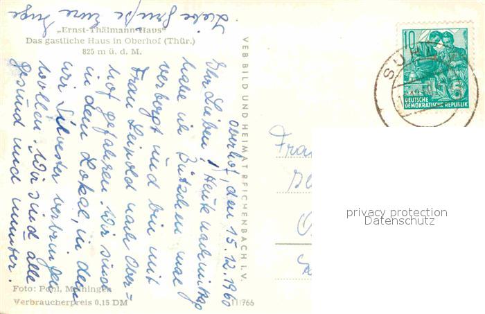 72643823 alte Postkarte Oberhof Thueringen Ernst Thaelmann Haus Winterlandschaft postalisch gelaufen Erhaltung siehe scans [FriedD77] KatCode: 11110016066047