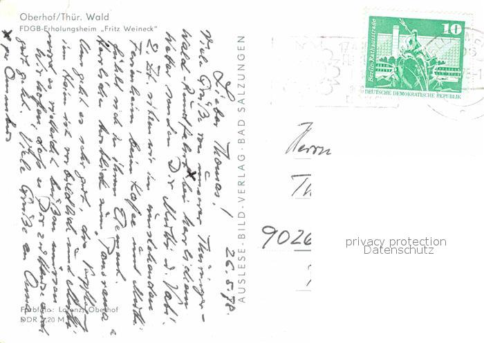 72798849 alte Postkarte Oberhof Thueringen FDGB Erholungsheim Fritz Weineck postalisch gelaufen Erhaltung siehe scans [FriedD77] KatCode: 11110016066047