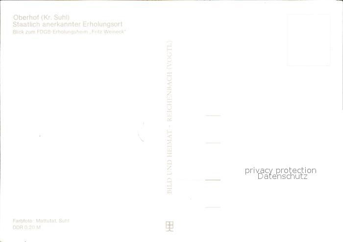 72583220 Oberhof Thueringen FDGB Erholungsheim Fritz Weineck postalisch nicht gelaufen Erhaltung siehe scans [FriedD77] KatCode: 11110016066047