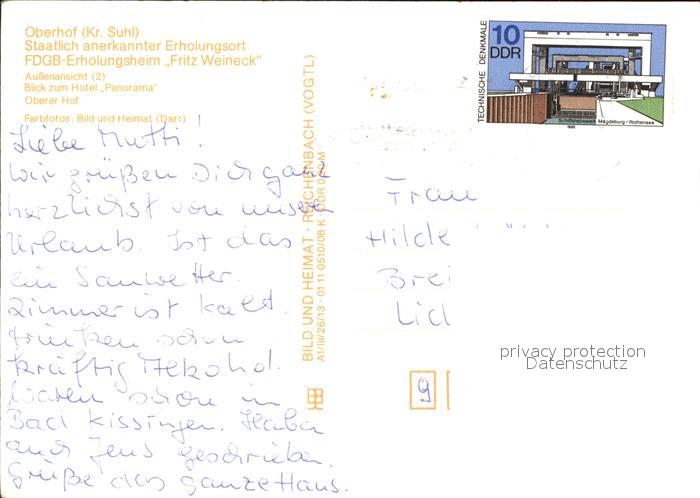 alte Postkarte Oberhof Thueringen FDGB Erholungsheim Fritz Weineck postalisch gelaufen Erhaltung siehe scans