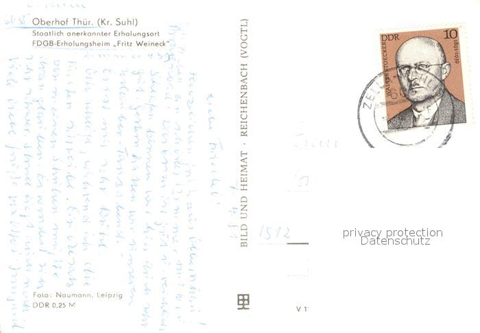 73134343 alte Postkarte Oberhof Thueringen FDGB Erholungsheim Fritz Weineck postalisch gelaufen Erhaltung siehe scans [FriedD77] KatCode: 11110016066047