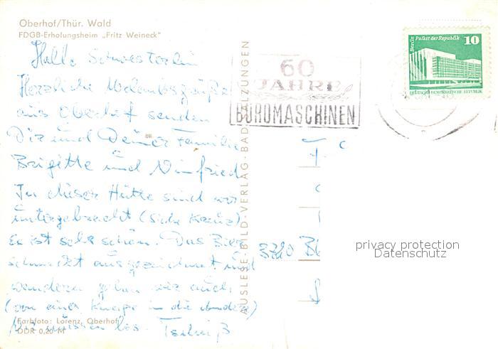 73064585 alte Postkarte Oberhof Thueringen FDGB Erholungsheim Fritz Weineck postalisch gelaufen Erhaltung siehe scans [FriedD77] KatCode: 11110016066047