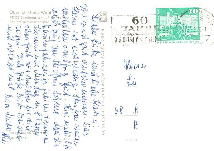73883322 Oberhof Thueringen FDGB Erholungsheim Fritz Weineck Bar am Alchimistenkeller postalisch gelaufen Erhaltung siehe scans [WerneD78] alte Postkarte Wern Katcode 11110016066047