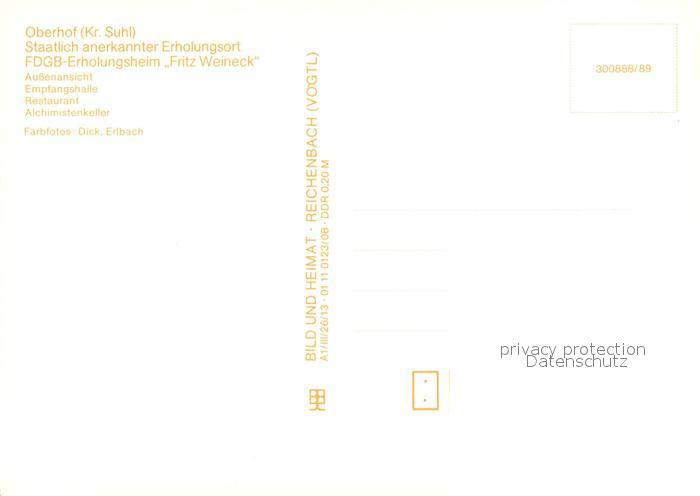 73661929 Oberhof Thueringen FDGB Erholungsheim Fritz Weineck Empfangshalle Restaurant Alchimistenkeller postalisch nicht gelaufen Erhaltung siehe scans [FriedD77] KatCode: 11110016066047